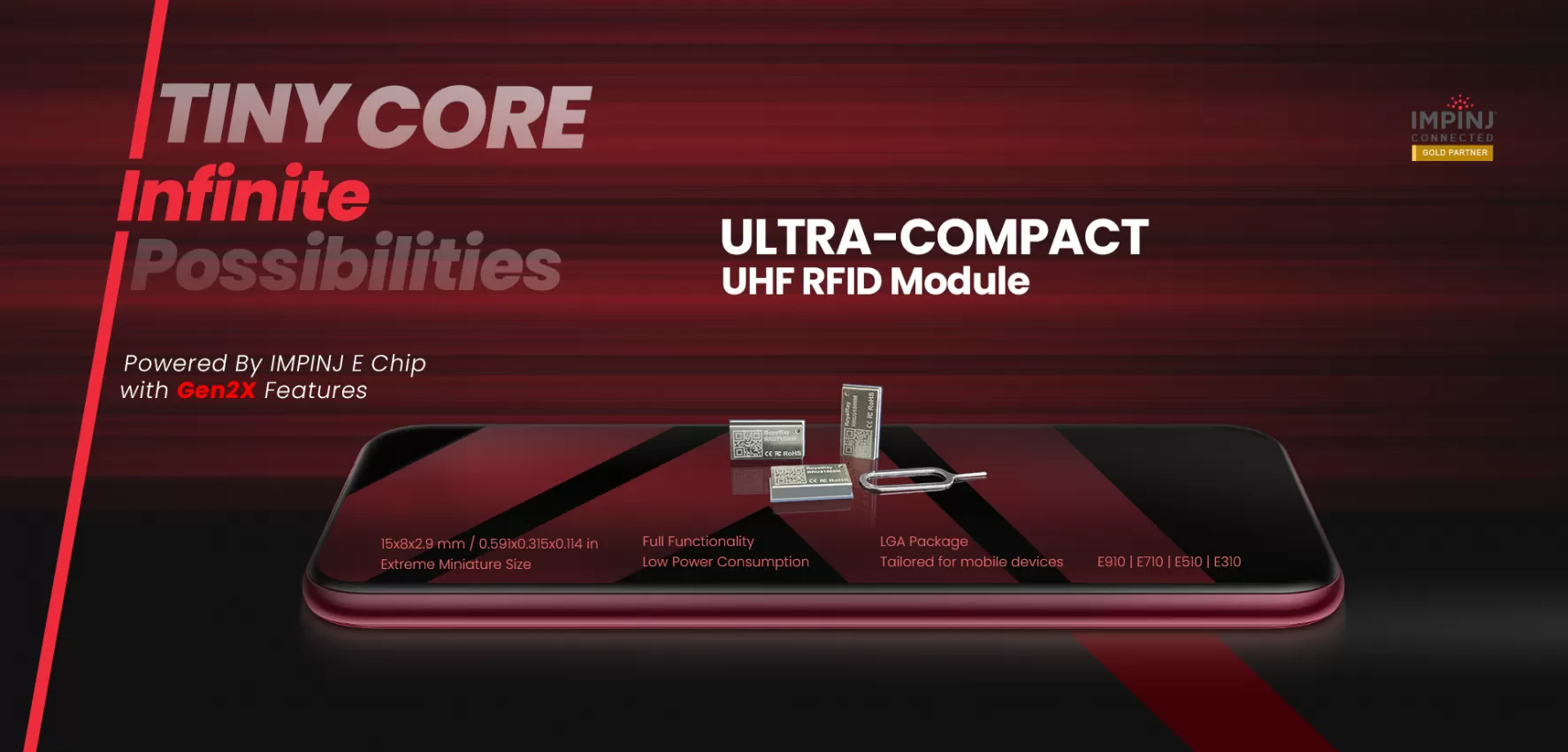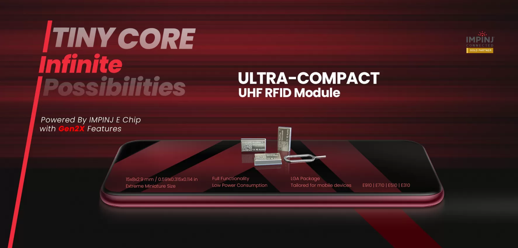 Based on the E310 chip design, Gen2 Extension Ready, ultimate small size, low power consumption, low cost, SMD form factor, maximum RF output of 27dBm,making it the best choice for various small desktop and mobile devices.Additionally, sub-versions based on the E710 and E510 are available.